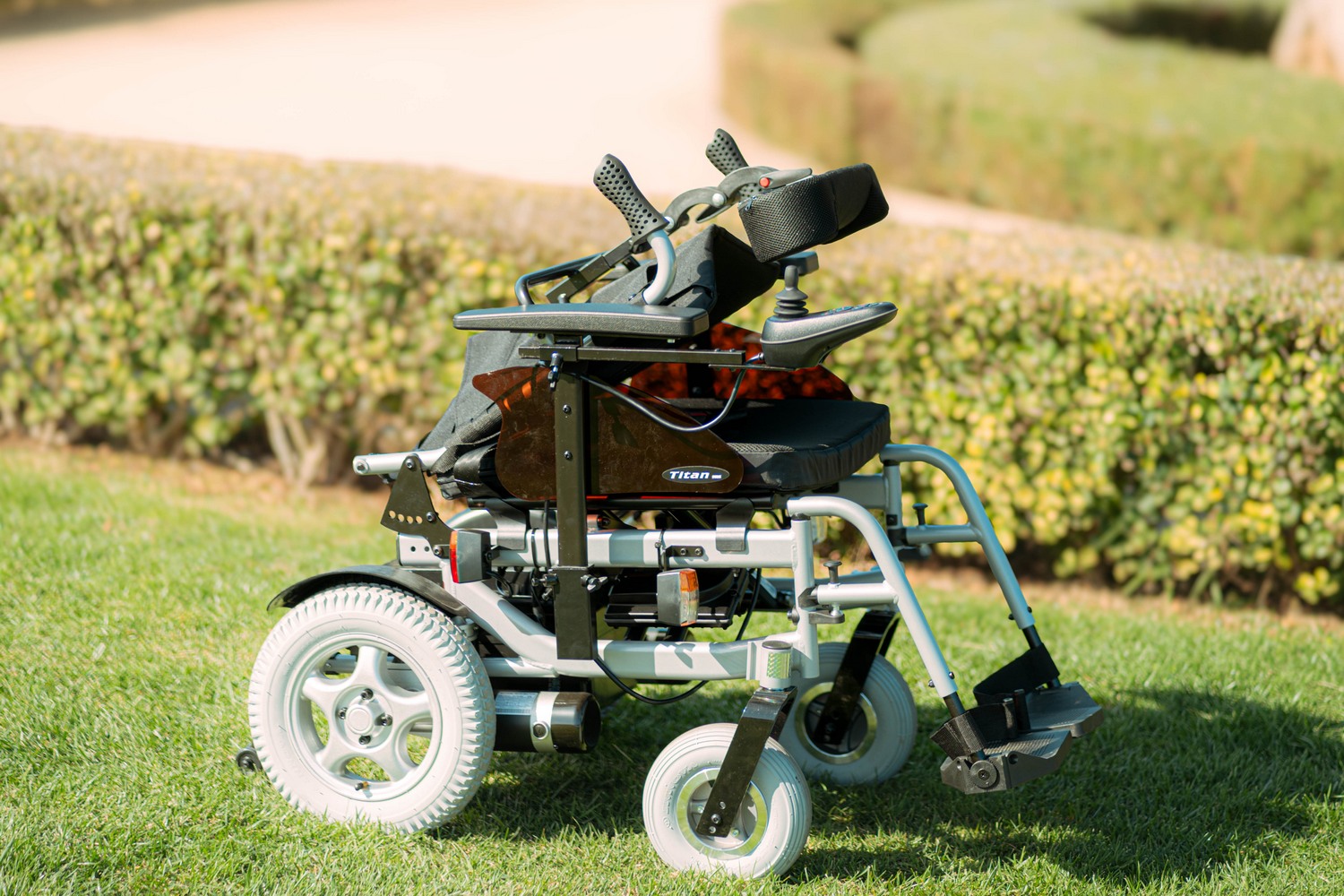Električni voziček Titan je udoben električen voziček, ki nudi vrsto različnih nastavitev in uporabniku zagotavlja neodvisno gibanje. Baterije pri električnem vozičku Titan so preprosto odstranljive. Voziček brez baterij je križno zložljiv, naslonjalo za hrbet pa se poklopi navzdol, kar olajša transport. Opremljen je z lučmi in odsevniki in zagotavlja vidnost uporabnika v prometu. Primeren je tako za vožnjo zunaj kot tudi v notranjih prostorih.