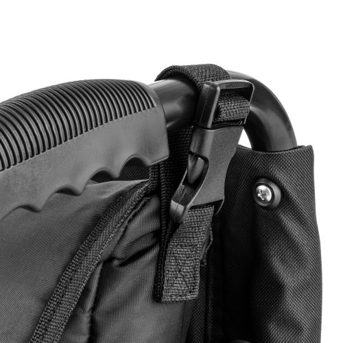 Torba za hrbtni naslon invalidskega vozička se z zaponkami pritrdi na ročaje za spremljevalca. Torba je zelo prostorna, zato je popolna za vsakodnevne nakupe ali prenašanje nujnih predmetov. Zaradi odsevnega traku, s katerim je opremljena torba, je uporabnik v temi ali mraku bolj viden. Trdni trakovi z zaponkami omogočajo hitro in enostavno pritrditev na večino invalidskih vozičkov.