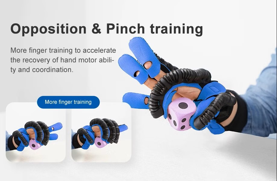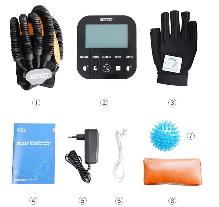 Naprava pomaga bolnikom izvajati upogibanje in iztegovanje prstov, zmanjšuje mišično napetost, lajša edeme in okorelost ter s sočasno vadbo spodbuja rehabilitacijo poškodb možganskih živcev. Domača naprava z rokavicami za rehabilitacijo rok Syrebo®SY-HRC12 je majhna in prenosna ter enostavna za uporabo, rehabilitacijske vaje lahko izvajate kjerkoli in kadarkoli.