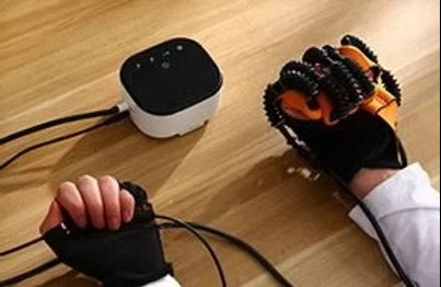 Pri treningu fine motorike, robotska rokavica vodi vsak poškodovan prst posebej skozi ekstenzijo in fleksijo.